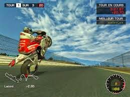 MotoGP 2 is a Grand Prix motorcycle racing video game developed by Climax Brighton for the Xbox and personal computer. It was the second title in THQ's MotoGP series and based the 2002 MotoGP season. Players could take part in a single race on three choosable circuits Suzuka, Phakisa, Jerez or participate in a full season, eventually unlocking more circuits to be raced on. Players could ride as most of the MotoGP riders from 2002, except for a couple of riders including Valentino Rossi, Max Biaggi and a few other riders. They are unlocked by achieving a specific number of points in Stunt Mode . Stunt mode is when the player races a one lap race performing different stunts as wheelies, burnouts and powerslides for points. Points are also rewarded when overtaking another rider, driving clean sections, or ramming other riders so they crash. However, recently gained points are lost if the player drives outside the track or crashes. Also if the player fails to reach goal within the timelimit, all rewarded points are lost. The menu theme music is Psynn 2 by Shawn Hargreaves, who created a new version of Psynn, version used in MotoGP.